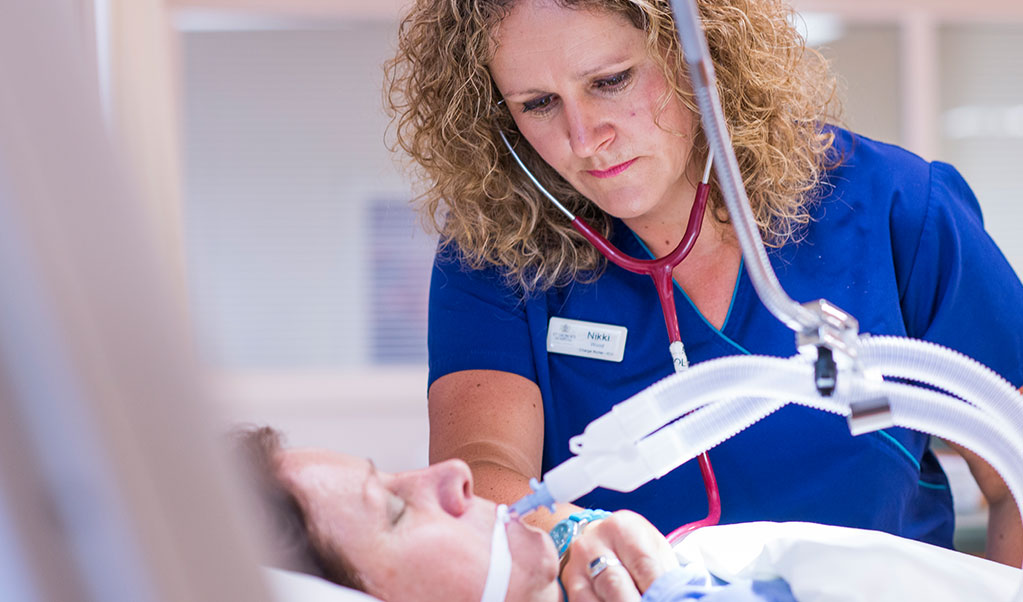 A cardiac services patient, attended to by a nurse, at St Georges Hospital Christchurch NZ