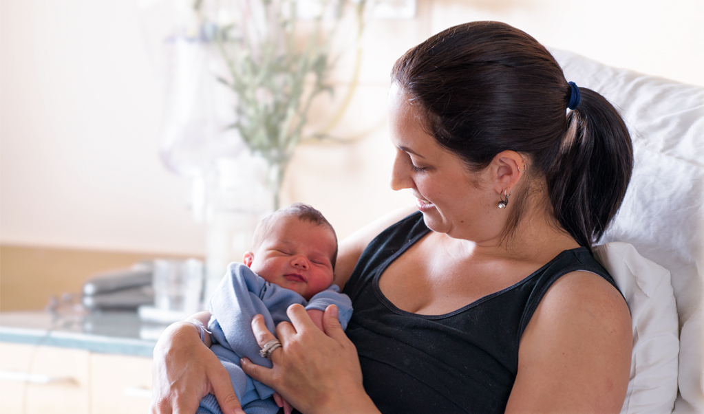 Patient holding new born baby at St Georges Hospital Maternity unit Christchurch NZ